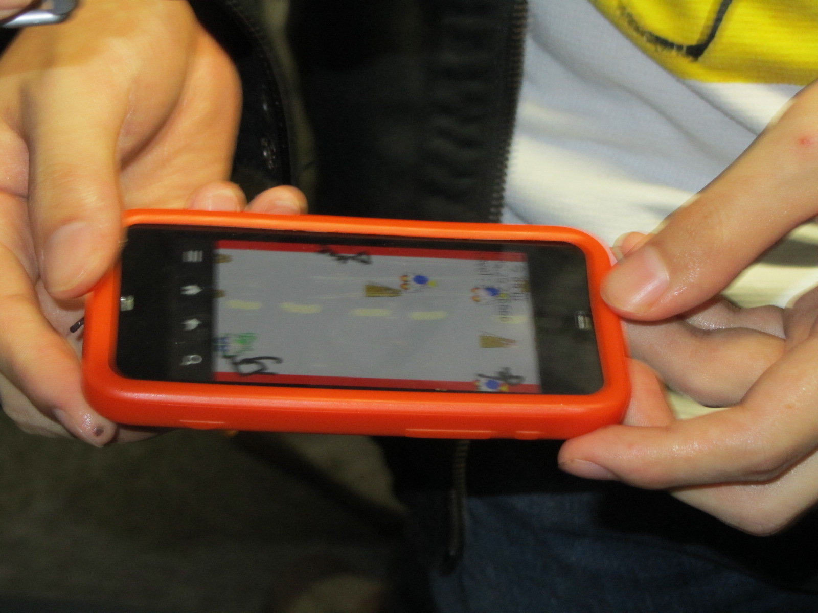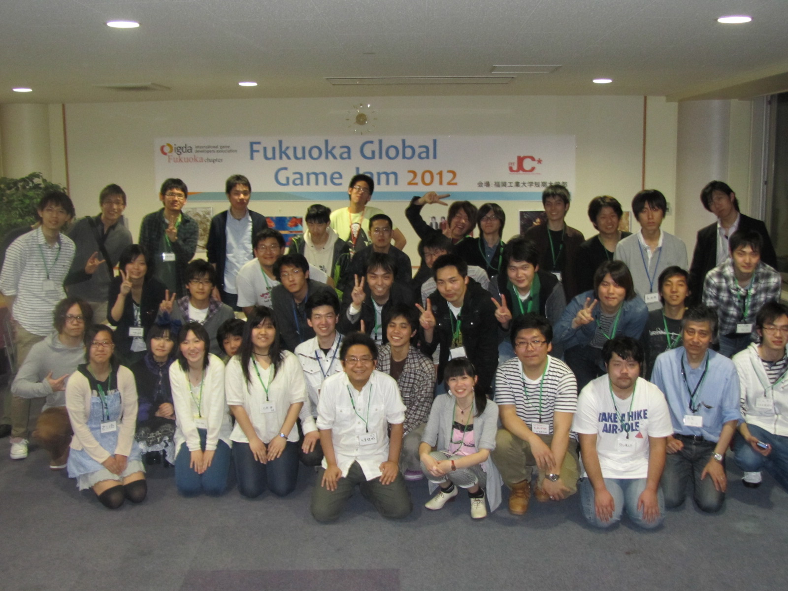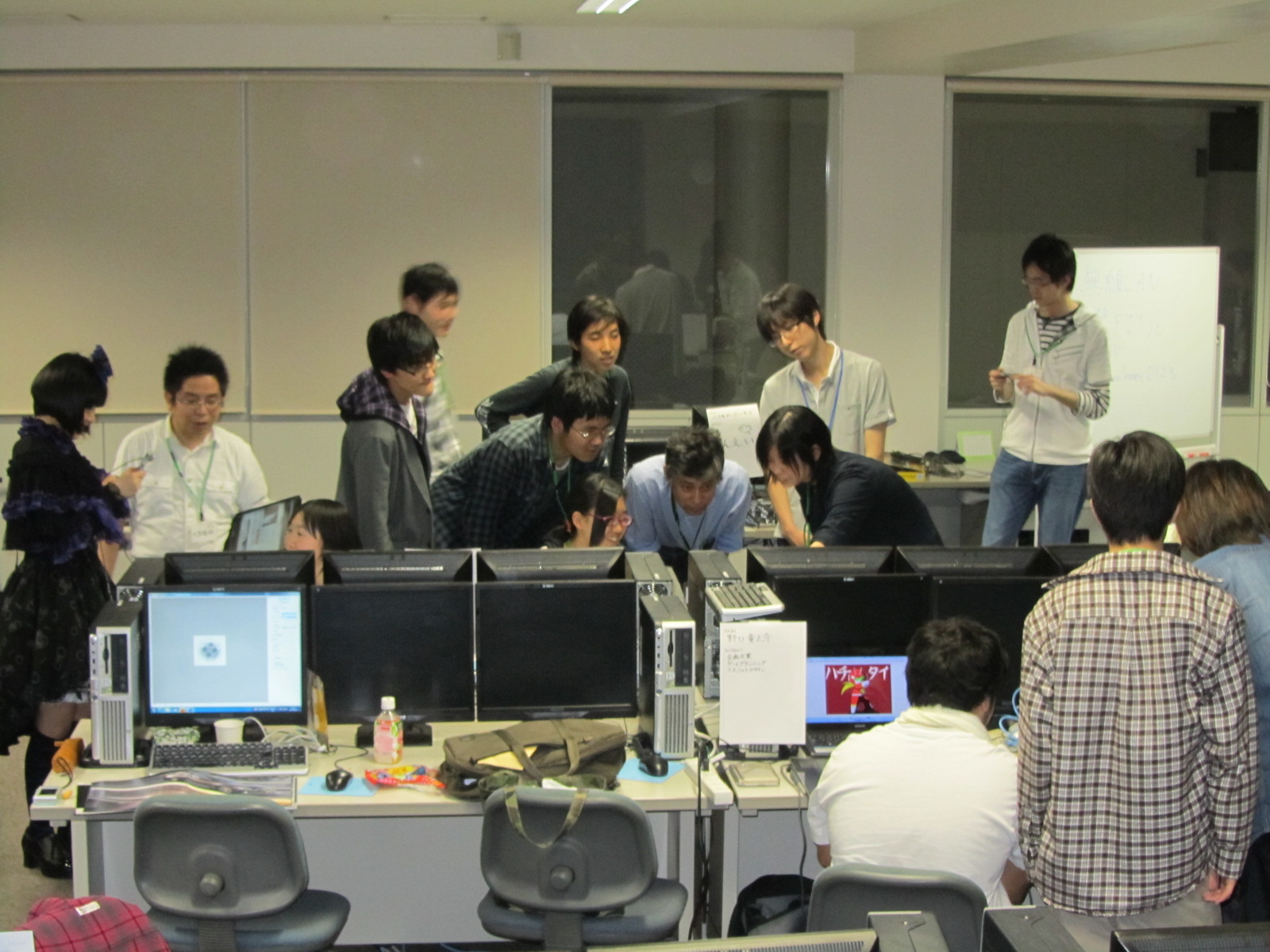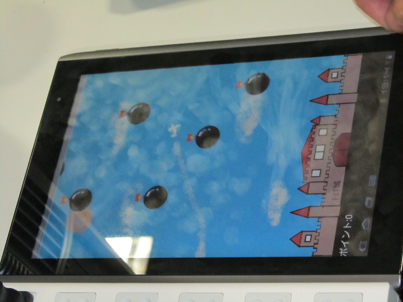福工大短大からは、弘中研究室の学生さんがゲームを中心に制作。傾きセンサを使ったAndroidゲームと、iOS向けの同様のゲームを2チームが制作。八耐後の交流会では多くの参加者が遊びました。