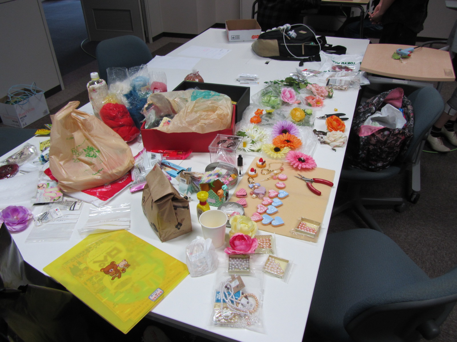 アートクラフト部の面々は主に羊毛フェルトを使った人形やアクセサリーを制作。