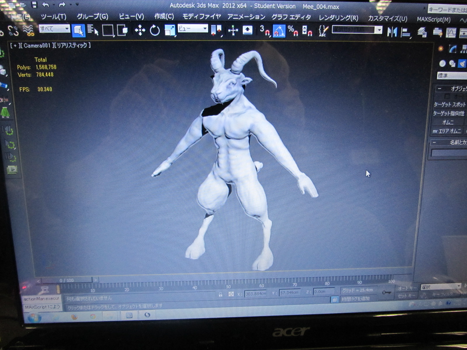 福岡工大の俵さん。こちらはヤギ人間を3Dでモデリングを制作。3dsMaxを使って素体を組んだ後、Sculptrisでディティールを仕上げたそうです。